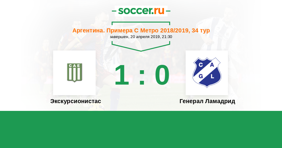 Аргентина. Примера С Метро 06.10.2019 Генерал Ламадрид Логотип Генерал Ламадрид (Буэнос-Айрес) 2:0 Логотип футбольный клуб Экскурсионистас (Буэнос-Айрес) Экскурсионистас