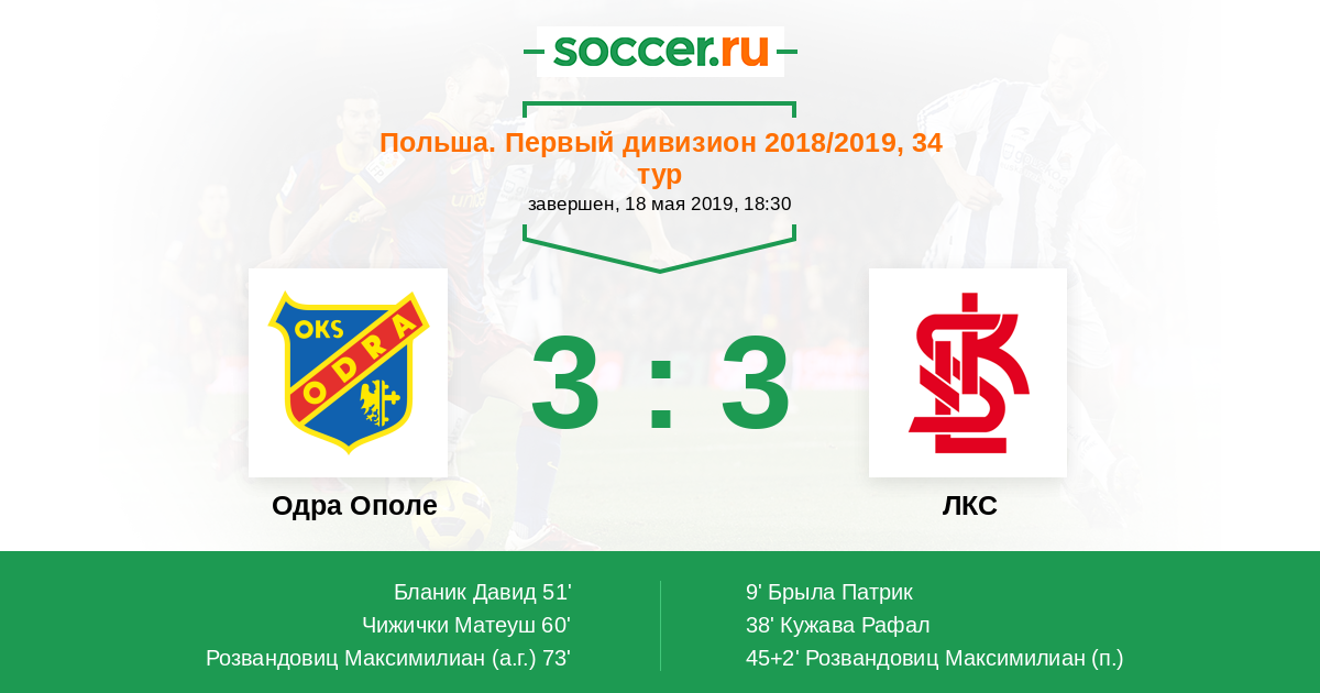 Протокол матча Одра Ополе против ЛКС