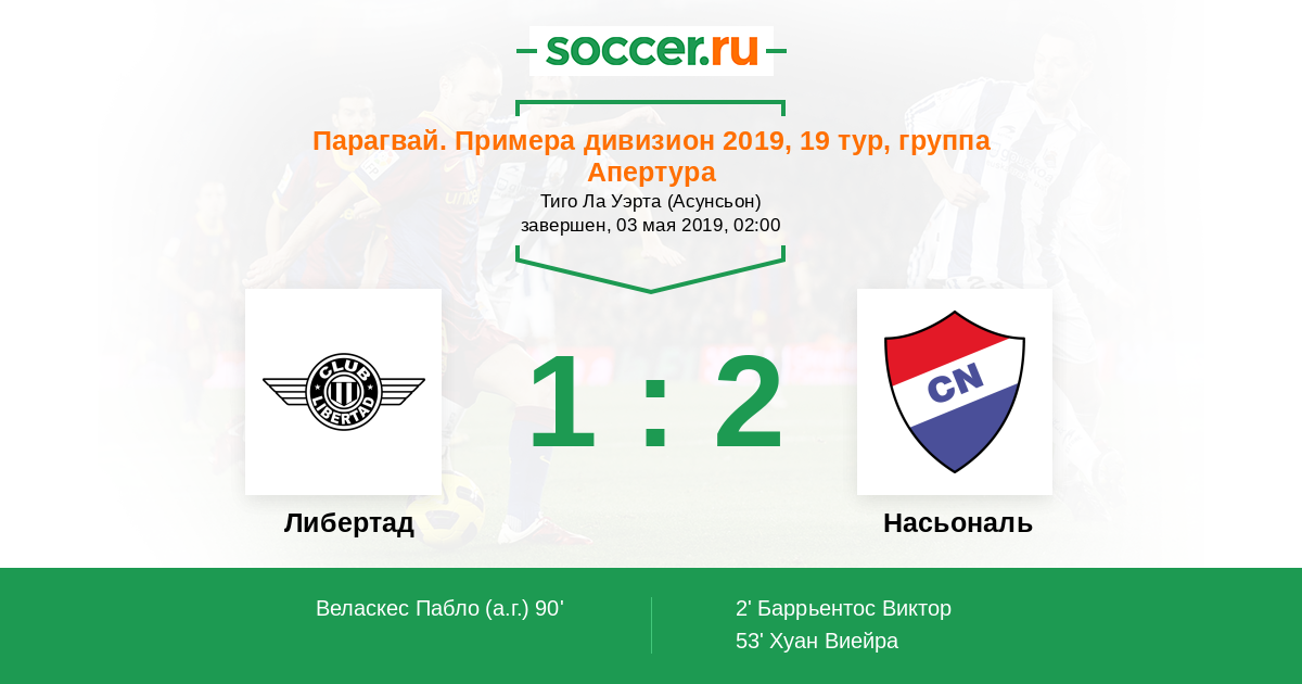 Протокол матча Либертад против Насьональ