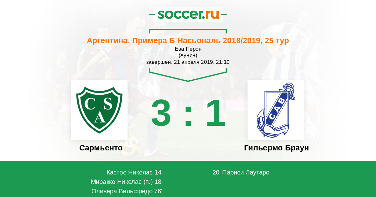 Протокол матча Сармьенто против Гильермо Браун