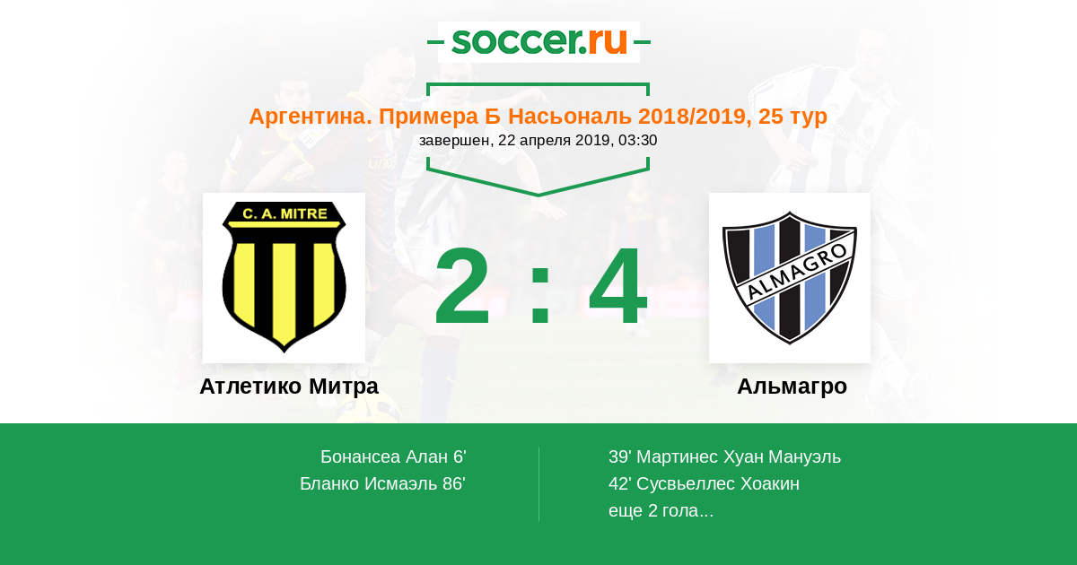 Протокол матча Атлетико Митра против Альмагро