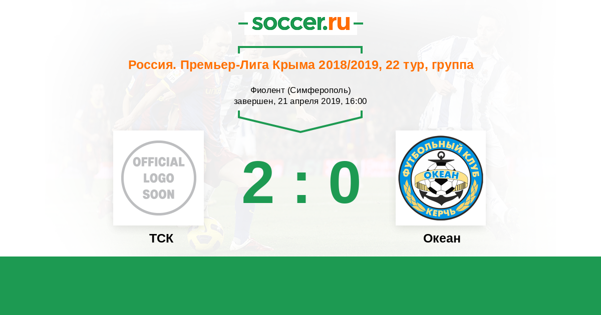 Россия. Премьер-Лига Крыма 24.03.2018 ТСК Логотип футбольный клуб ТСК (Симферополь) 2:0 Логотип футбольный клуб Океан (Керчь) Океан