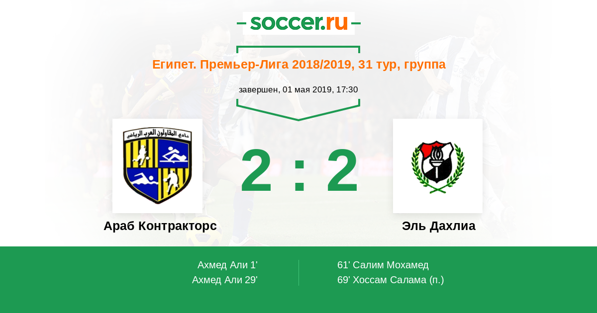 Протокол матча Араб Контракторс против Эль Дахлиа