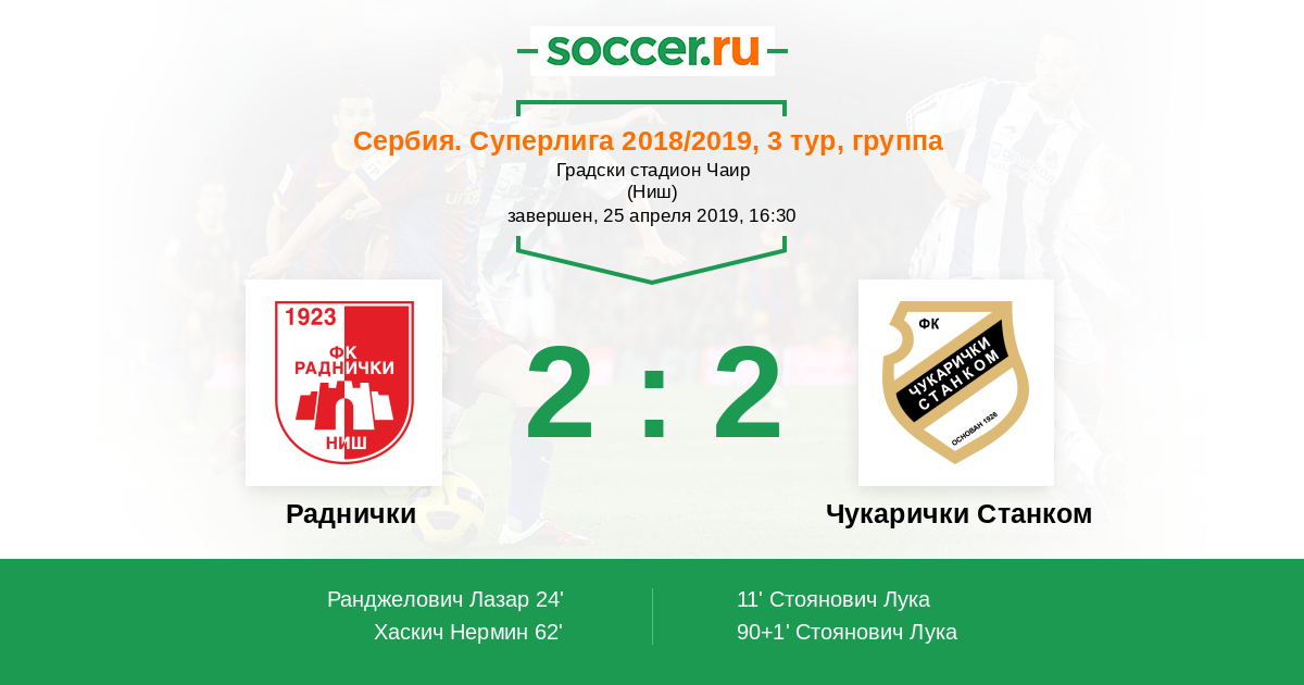 Протокол матча Раднички против Чукарички Станком