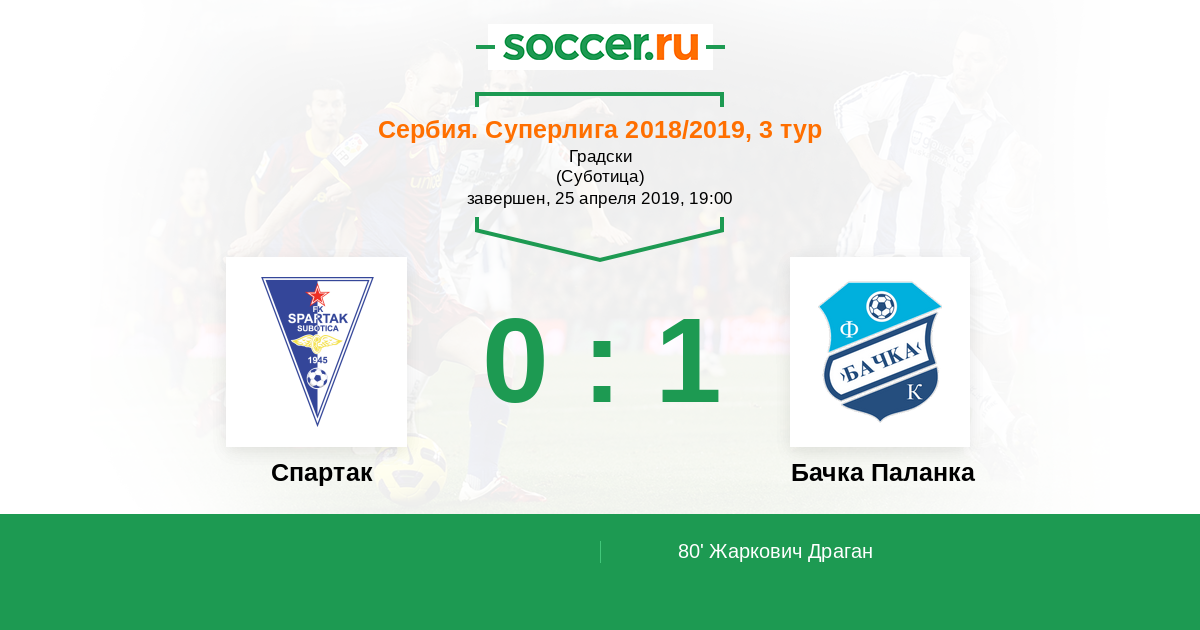 Протокол матча Спартак Суботица против Бачка Паланка