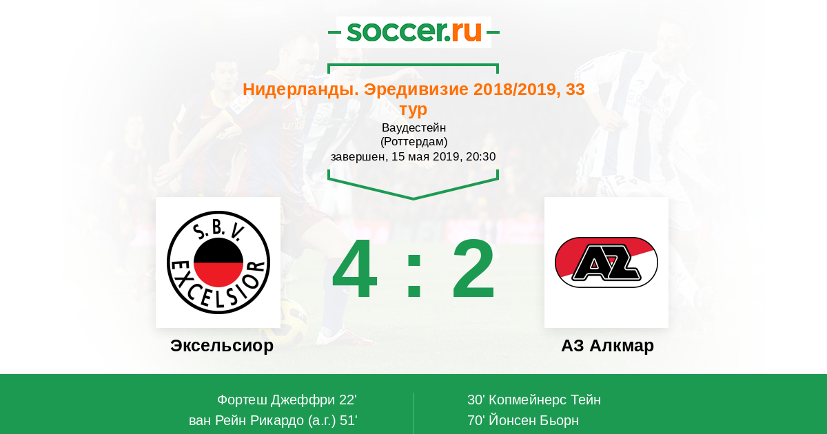 Протокол матча Эксельсиор против АЗ Алкмар