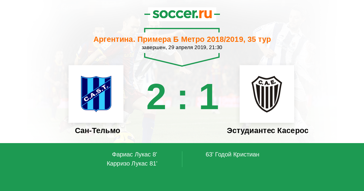 Протокол матча Сан-Тельмо против Эстудиантес Касерос