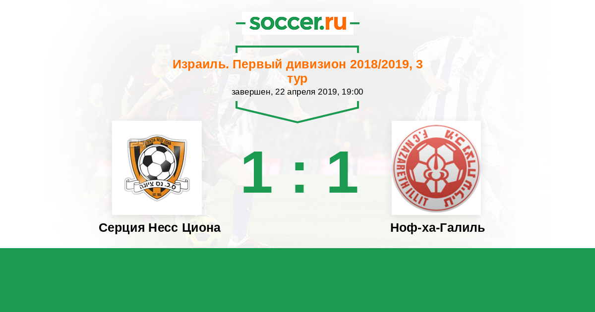 Израиль. Первый дивизион 26.10.2018 Серция Несс Циона Логотип футбольный клуб Серция Несс Циона 2:1 Логотип футбольный клуб Ноф-ха-Галиль (Назарет Иллит) Ноф-ха-Галиль