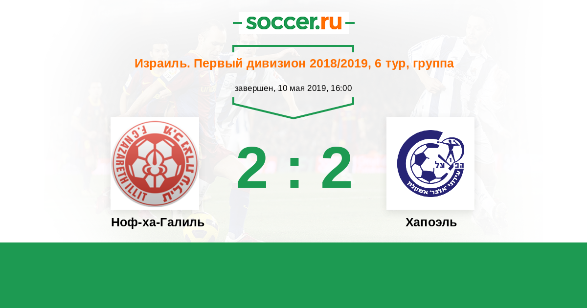 Израиль. Первый дивизион 15.06.2020 Хапоэль Логотип футбольный клуб Хапоэль (Ашкелон) 1:1 Логотип футбольный клуб Ноф-ха-Галиль (Назарет Иллит) Ноф-ха-Галиль