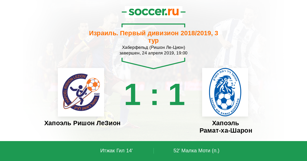 Протокол матча Хапоэль Ришон ЛеЗион против Хапоэль Рамат-ха-Шарон