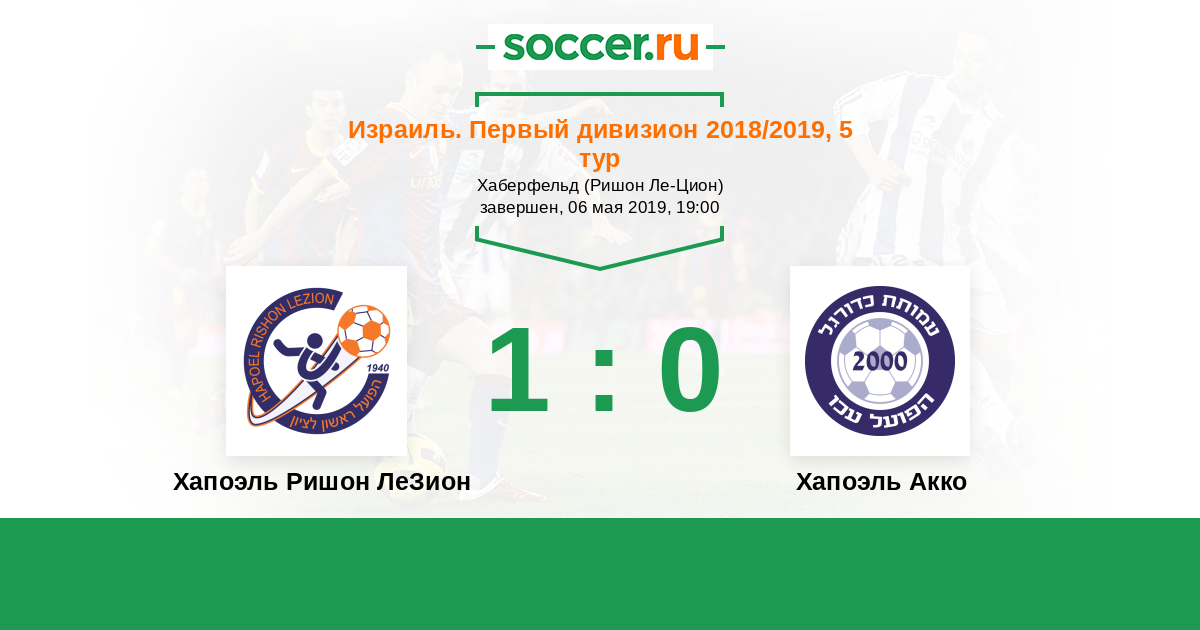 Израиль. Первый дивизион 12.09.2019 Хапоэль Ришон ЛеЗион Логотип футбольный клуб Хапоэль Ришон ЛеЗион 1:0 Логотип футбольный клуб Хапоэль Акко Хапоэль Акко