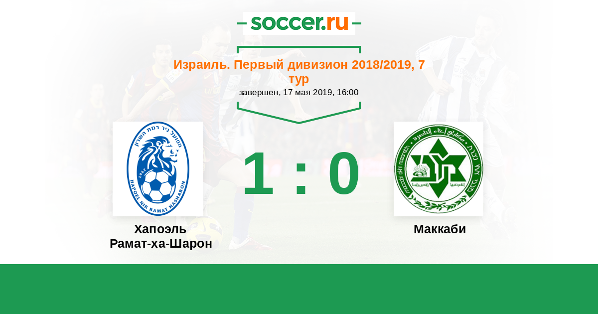 Израиль. Первый дивизион 15.03.2019 Маккаби Логотип футбольный клуб Маккаби (Ахи Назарет) 3:1 Логотип футбольный клуб Хапоэль Рамат-ха-Шарон Хапоэль Рамат-ха-Шарон