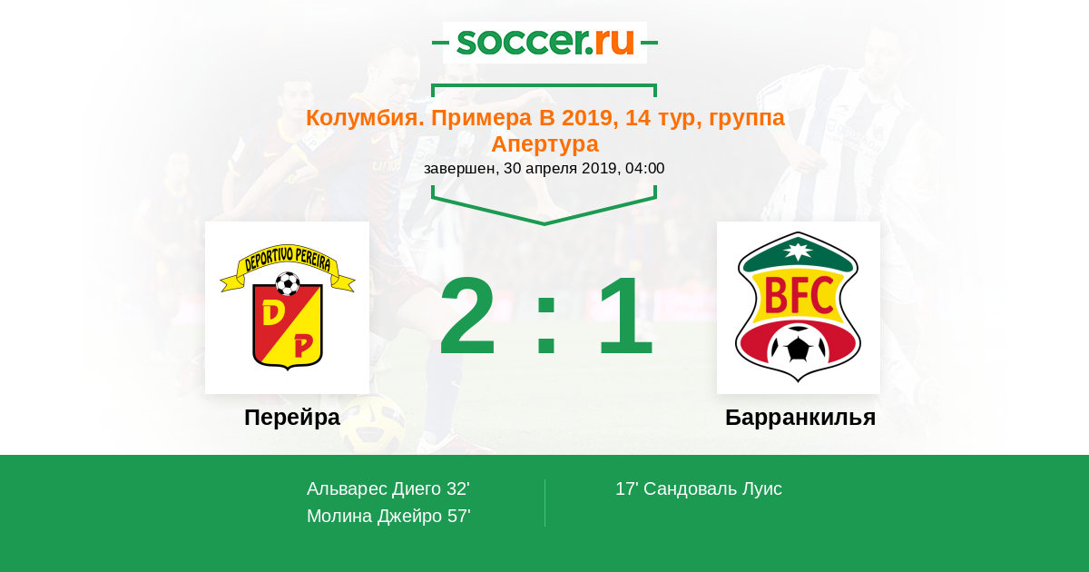Протокол матча Перейра против Барранкилья