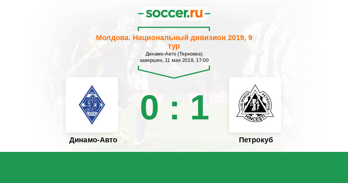 Молдова. Национальный дивизион 05.05.2018 Петрокуб Логотип футбольный клуб Петрокуб (Хынчешты) 0:3 Логотип футбольный клуб Динамо-Авто (Тирасполь) Динамо-Авто