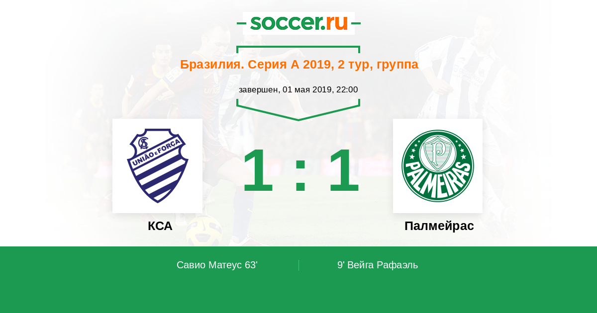 Протокол матча КСА против Палмейрас