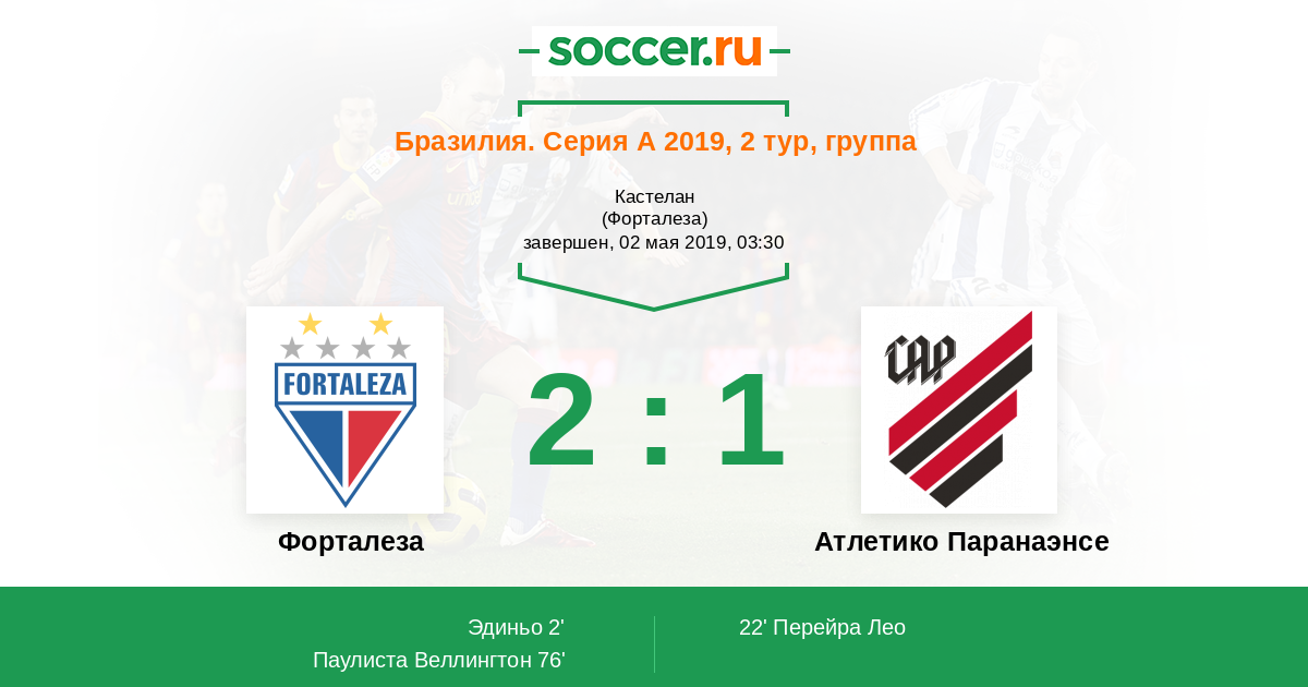 Протокол матча Форталеза против Атлетико Паранаэнсе