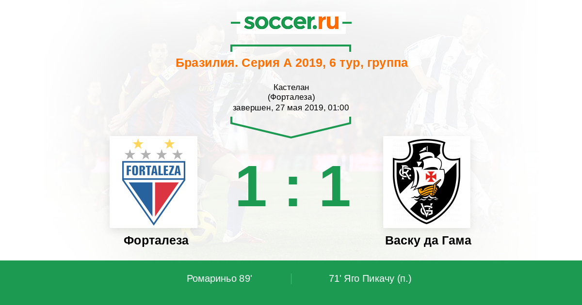 Протокол матча Форталеза против Васку да Гама
