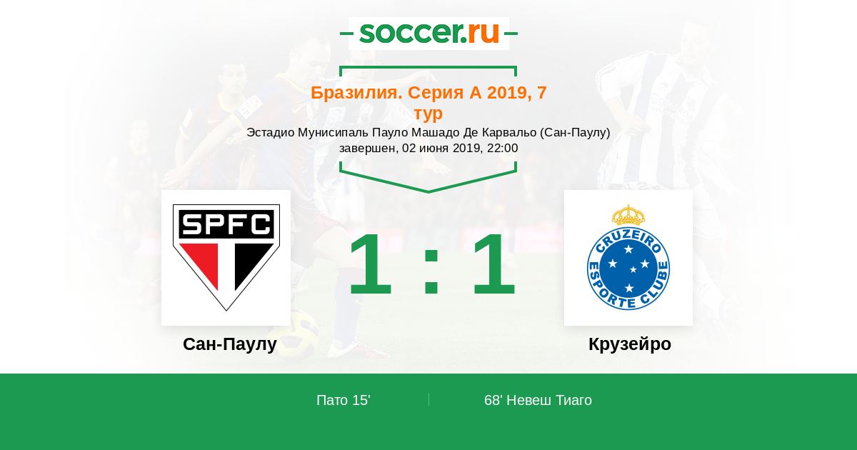 Протокол матча Сан-Паулу против Крузейро
