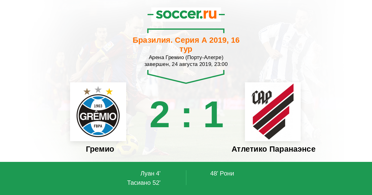 Протокол матча Гремио против Атлетико Паранаэнсе