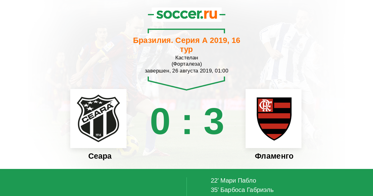 Протокол матча Сеара против Фламенго