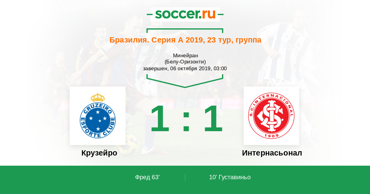 Протокол матча Крузейро против Интернасьонал
