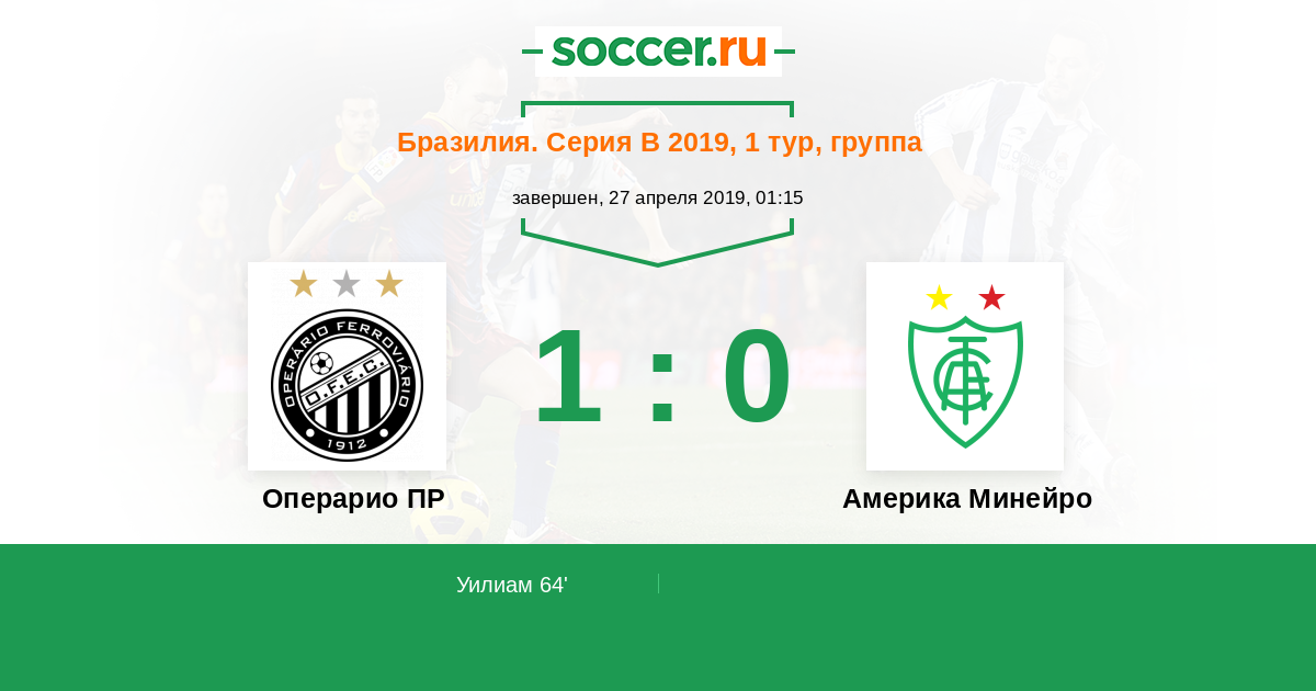 Протокол матча Операрио ПР против Америка Минейро