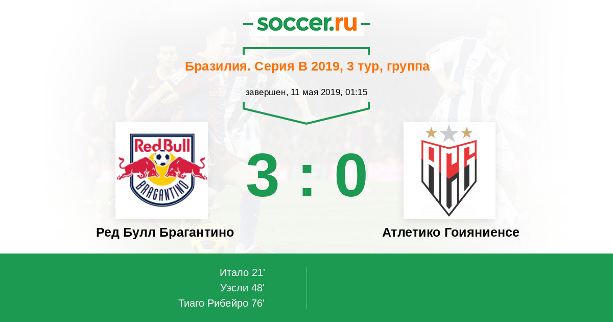 Протокол матча Ред Булл Брагантино против Атлетико Гоияниенсе