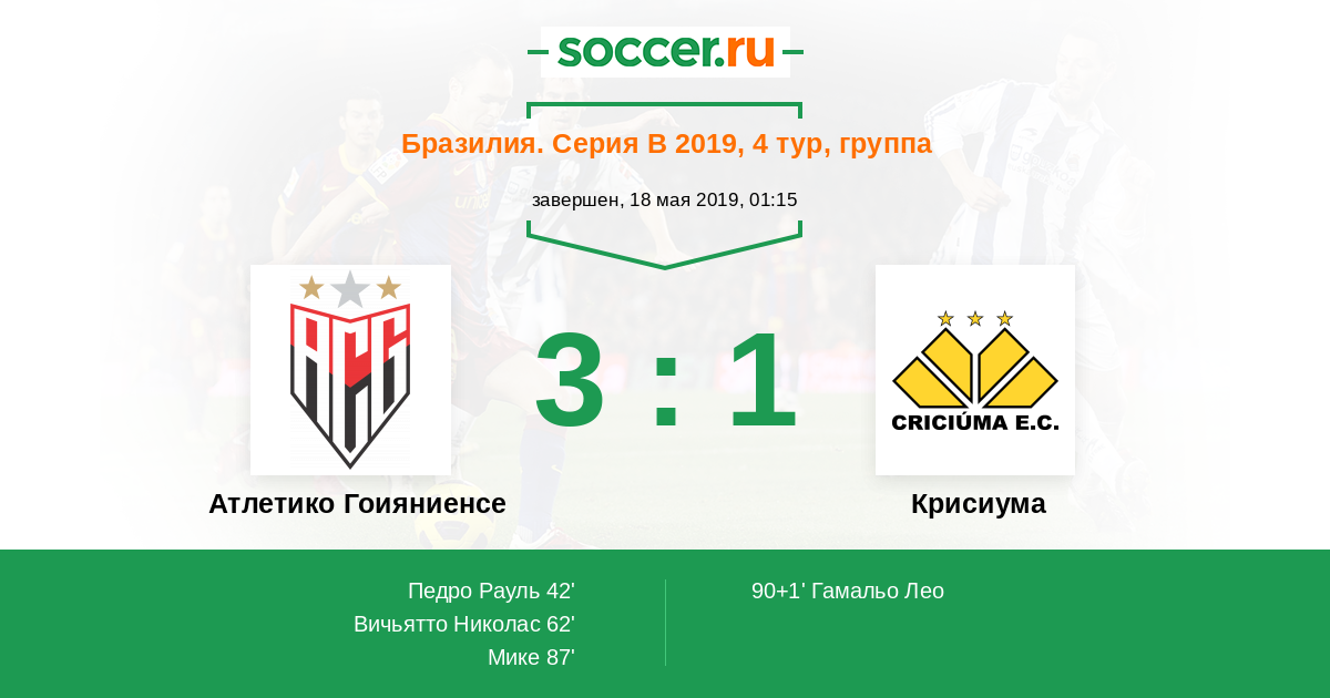 Протокол матча Атлетико Гоияниенсе против Крисиума