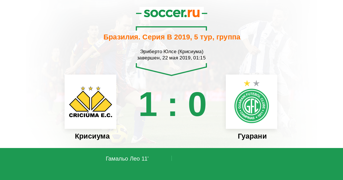 11' (1:0) Гамальо Лео (99) (Весли (8))