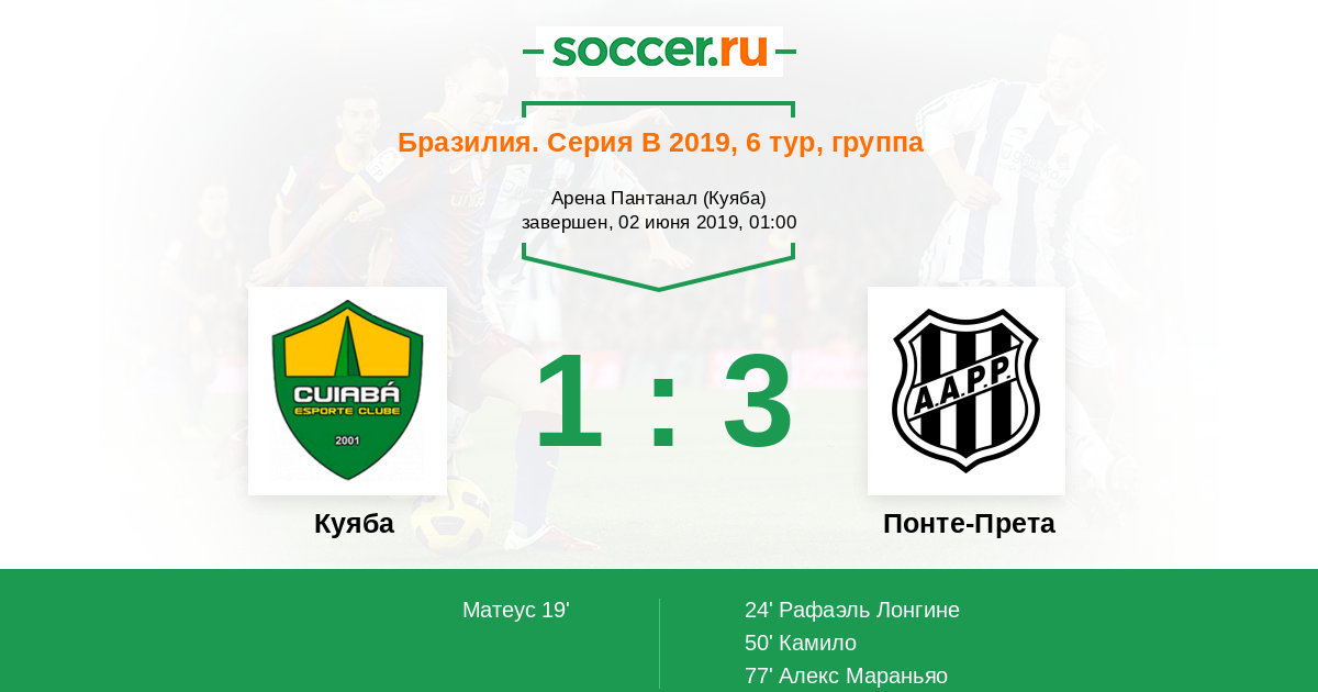 Протокол матча Куяба против Понте-Прета