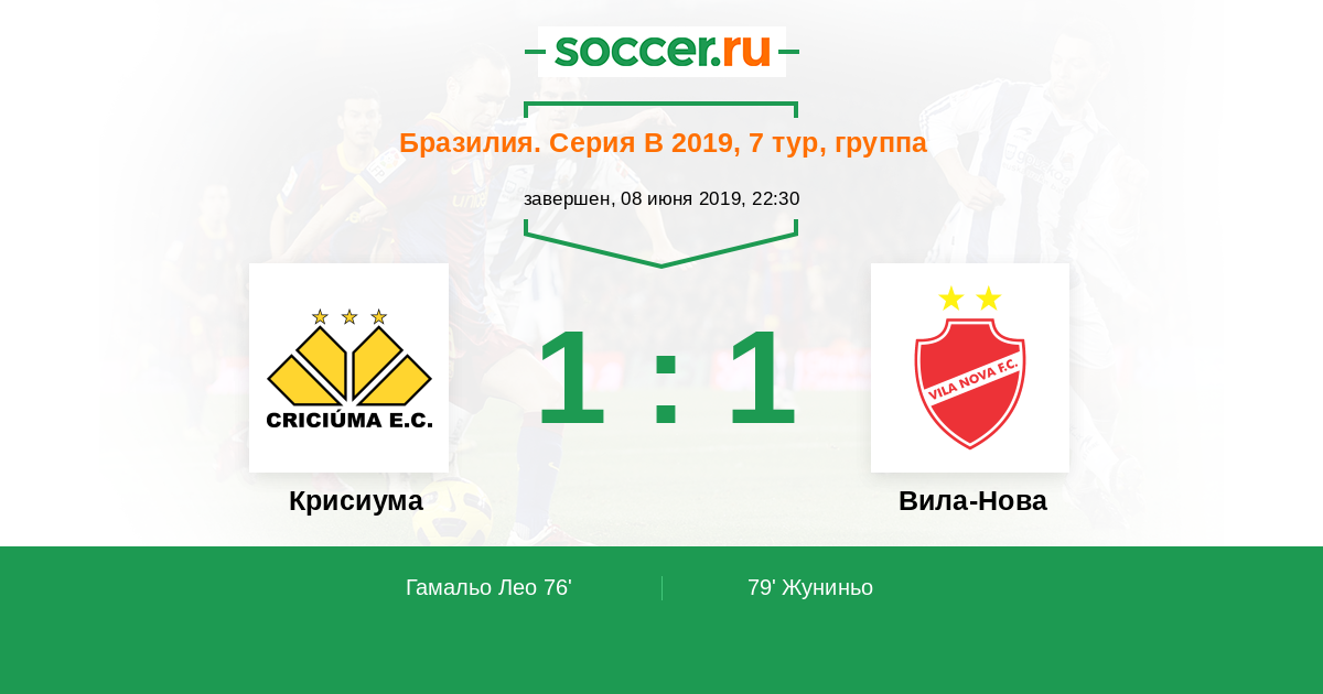 Протокол матча Крисиума против Вила-Нова