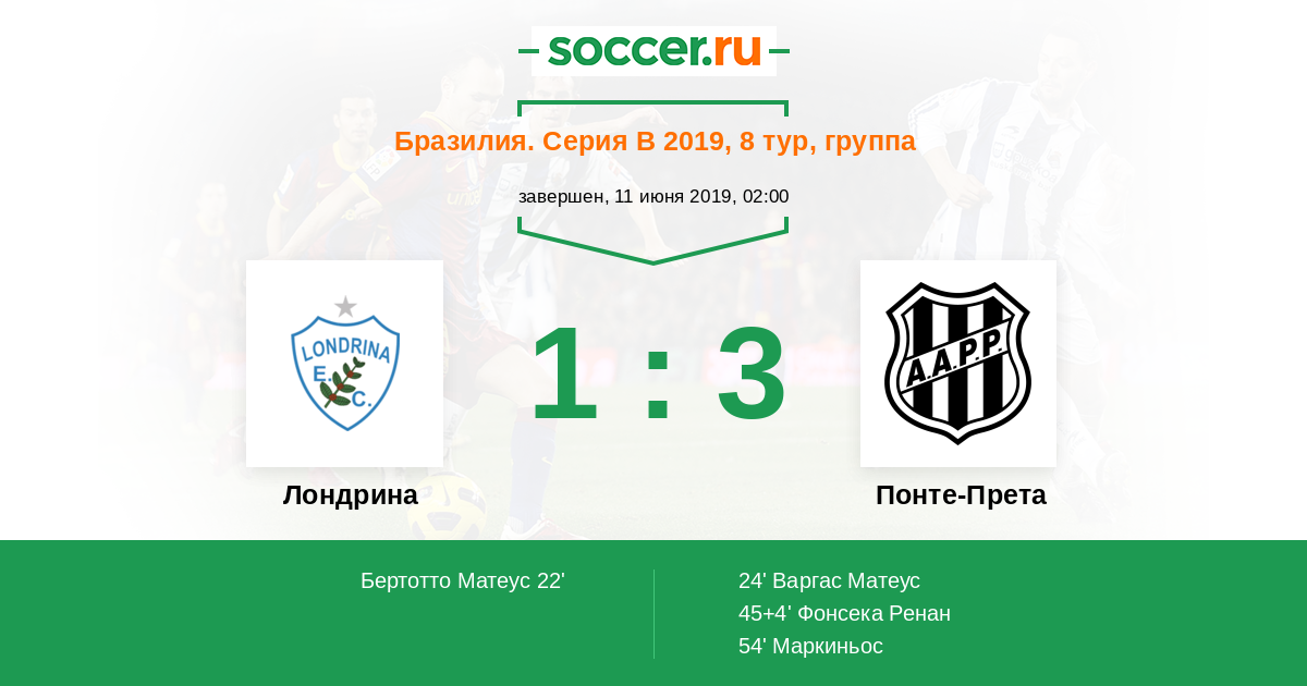 Протокол матча Лондрина против Понте-Прета