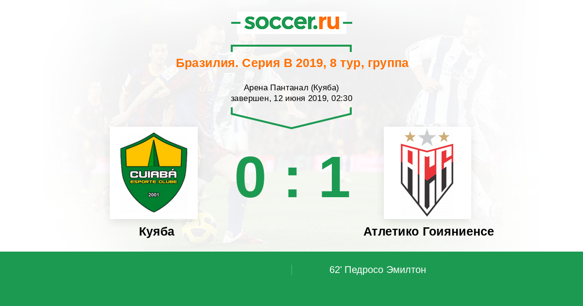 62' (0:1) Педросо Эмилтон (7) (Матеузиньо (10))