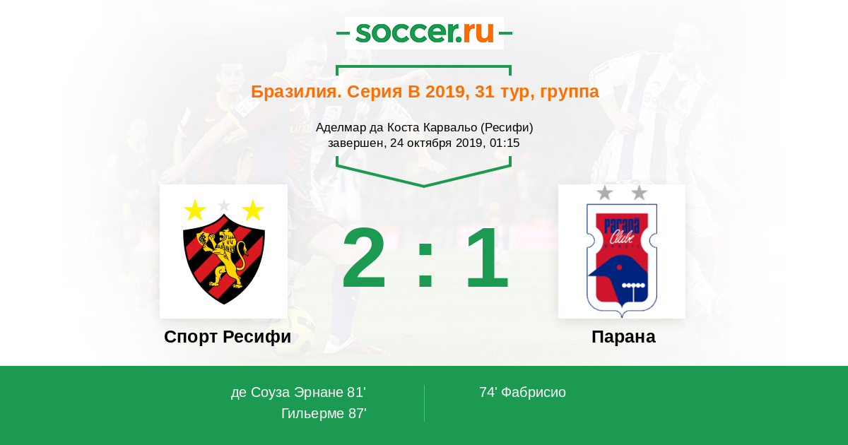 Протокол матча Спорт Ресифи против Парана