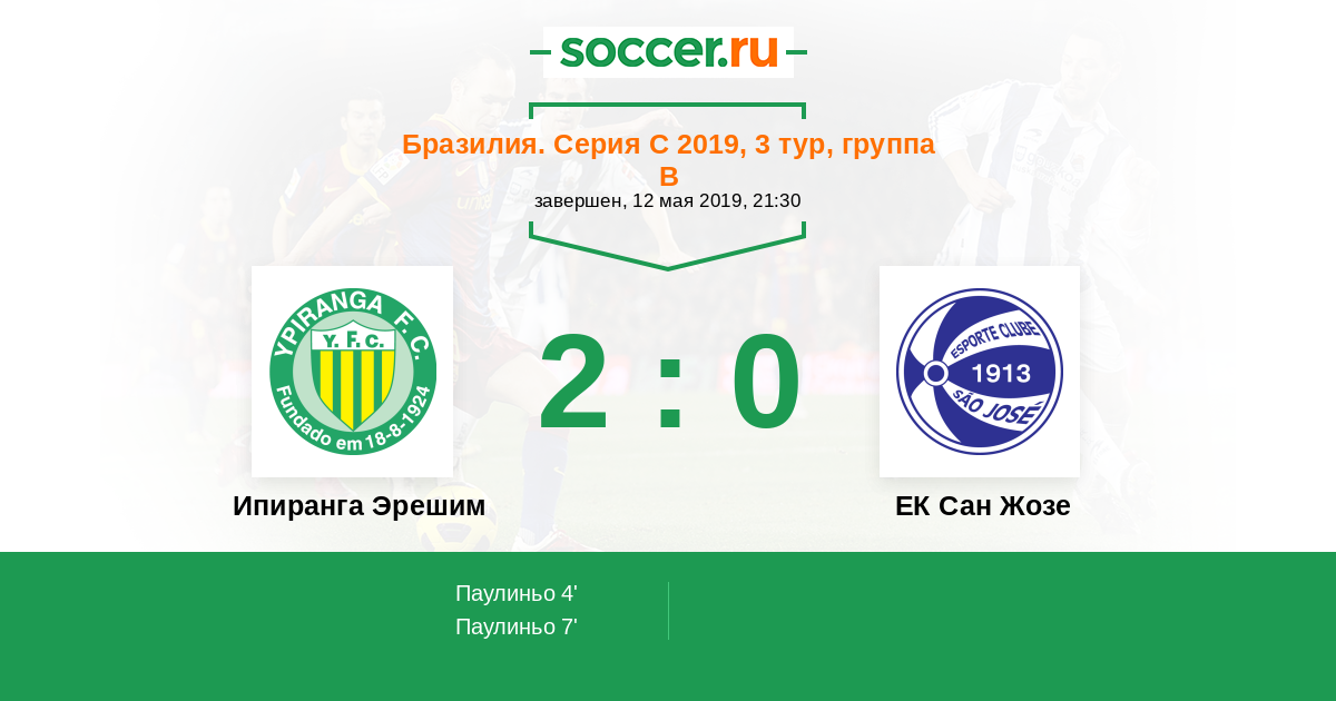 Протокол матча Ипиранга Эрешим против ЕК Сан Жозе
