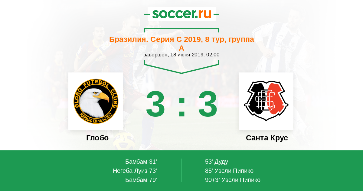 Протокол матча Глобо против Санта Крус