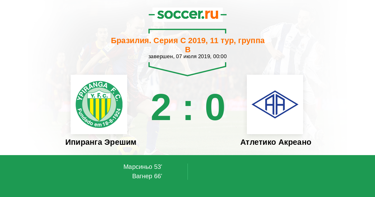 Протокол матча Ипиранга Эрешим против Атлетико Акреано
