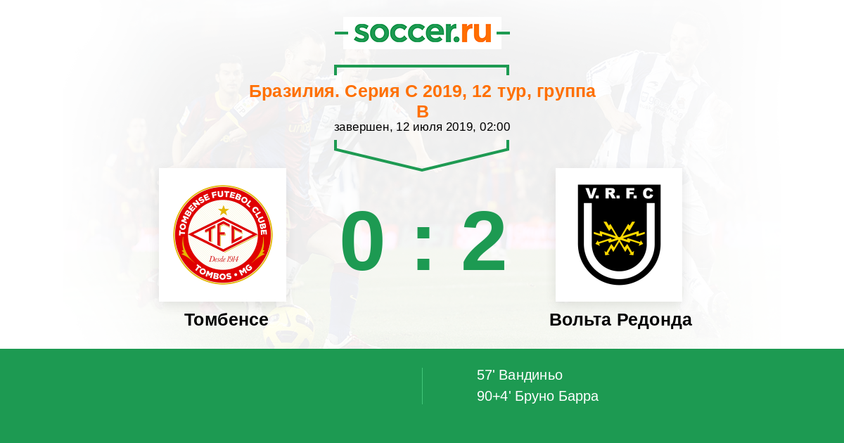 Протокол матча Томбенсе против Вольта Редонда