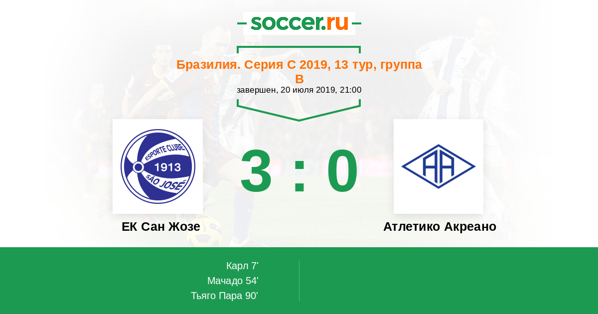 Протокол матча ЕК Сан Жозе против Атлетико Акреано