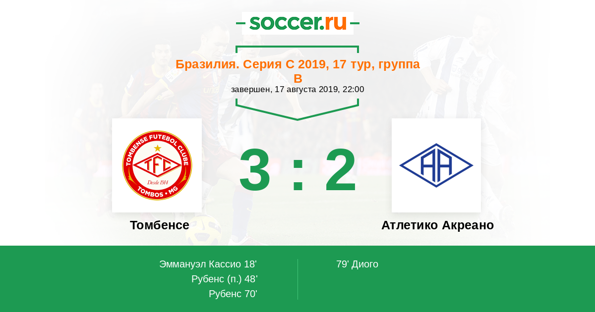Протокол матча Томбенсе против Атлетико Акреано