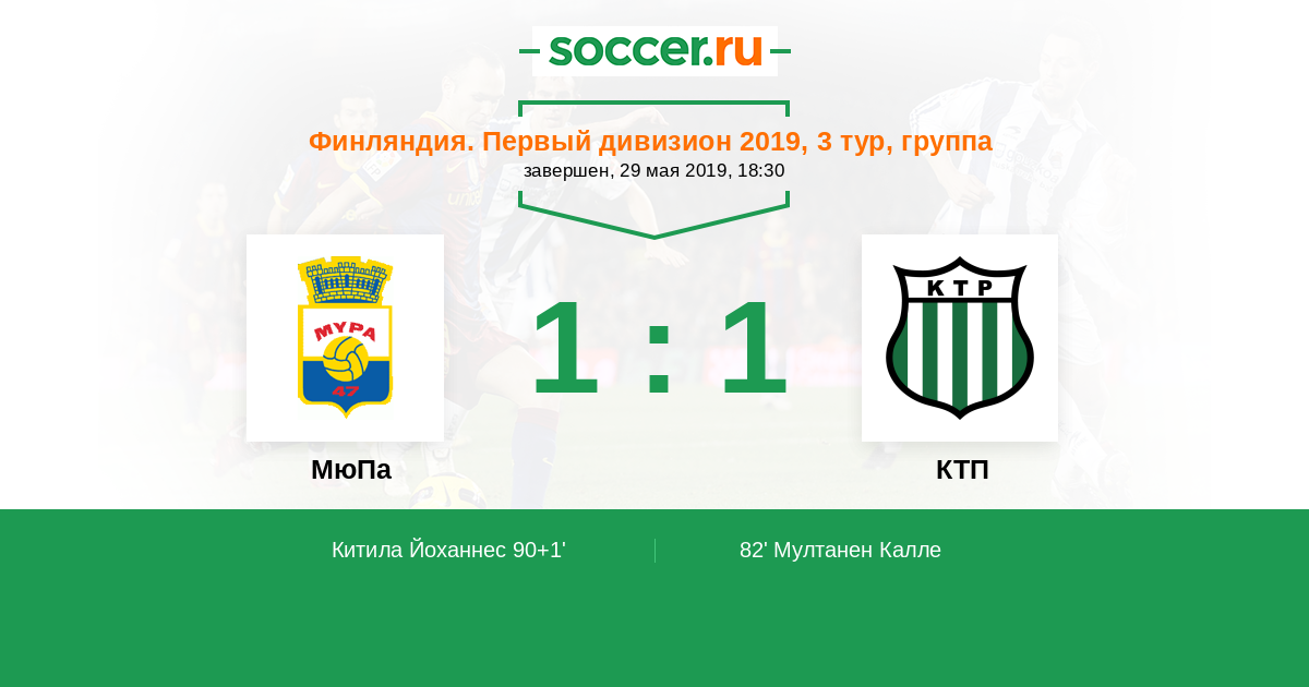 Протокол матча МюПа против КТП