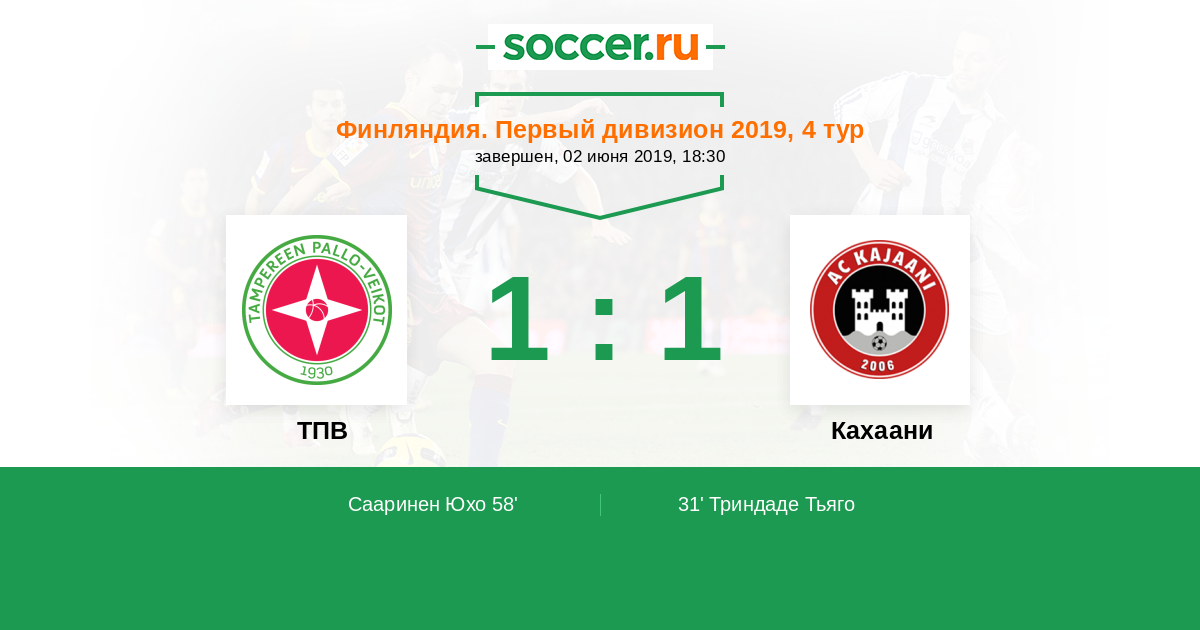 Протокол матча ТПВ против Кахаани