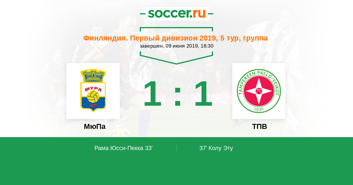 Протокол матча МюПа против ТПВ