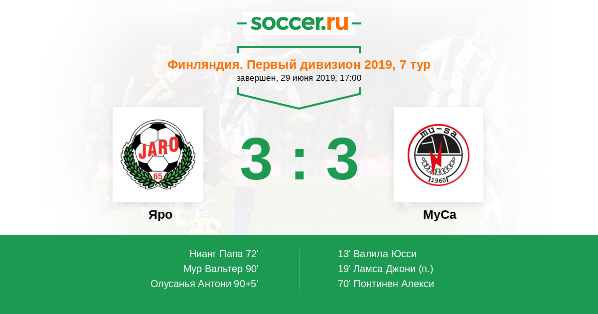 Протокол матча Яро против МуСа