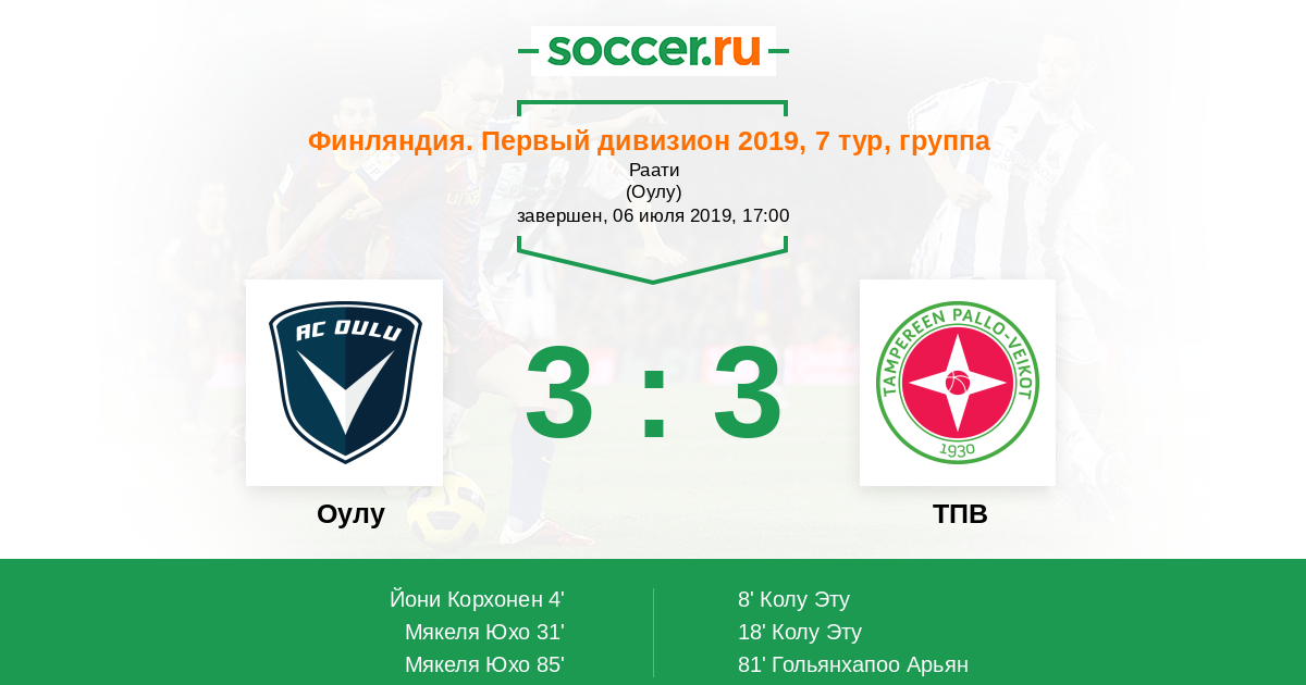Протокол матча Оулу против ТПВ