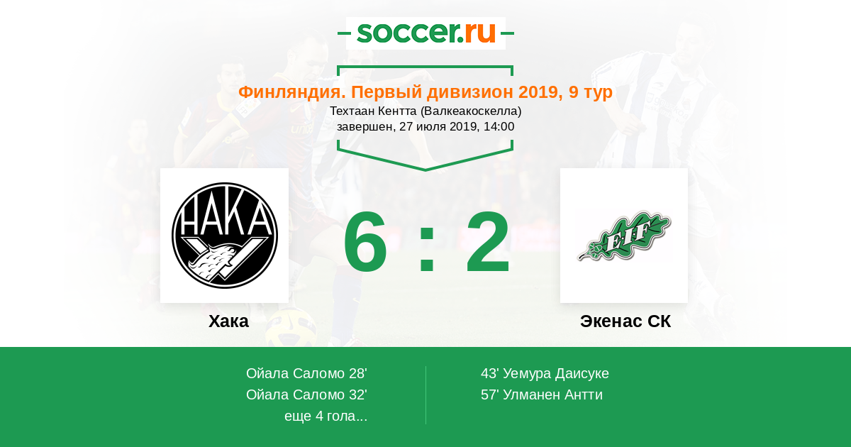 Протокол матча Хака против Экенас СК