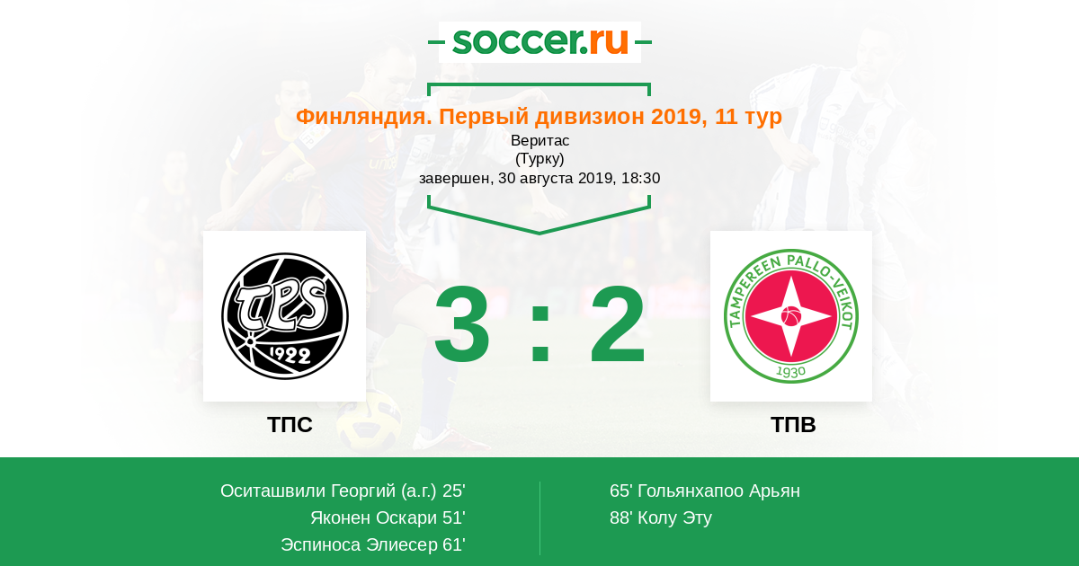 Протокол матча ТПС против ТПВ