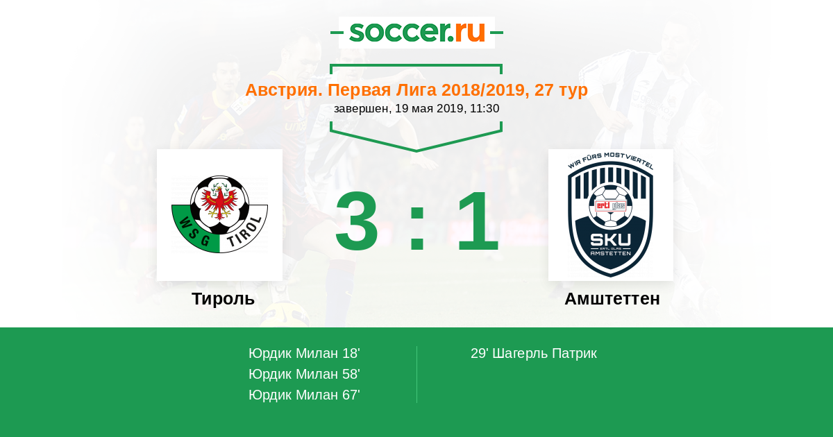 Протокол матча Тироль против Амштеттен