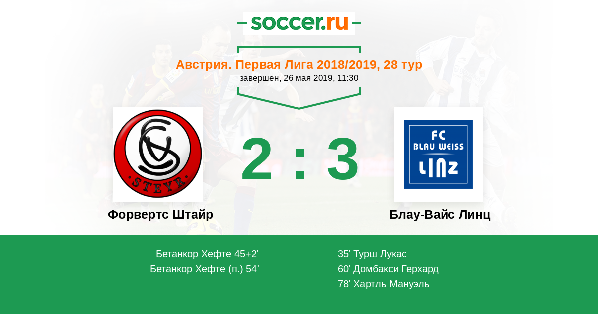 Протокол матча Форвертс Штайр против Блау-Вайс Линц