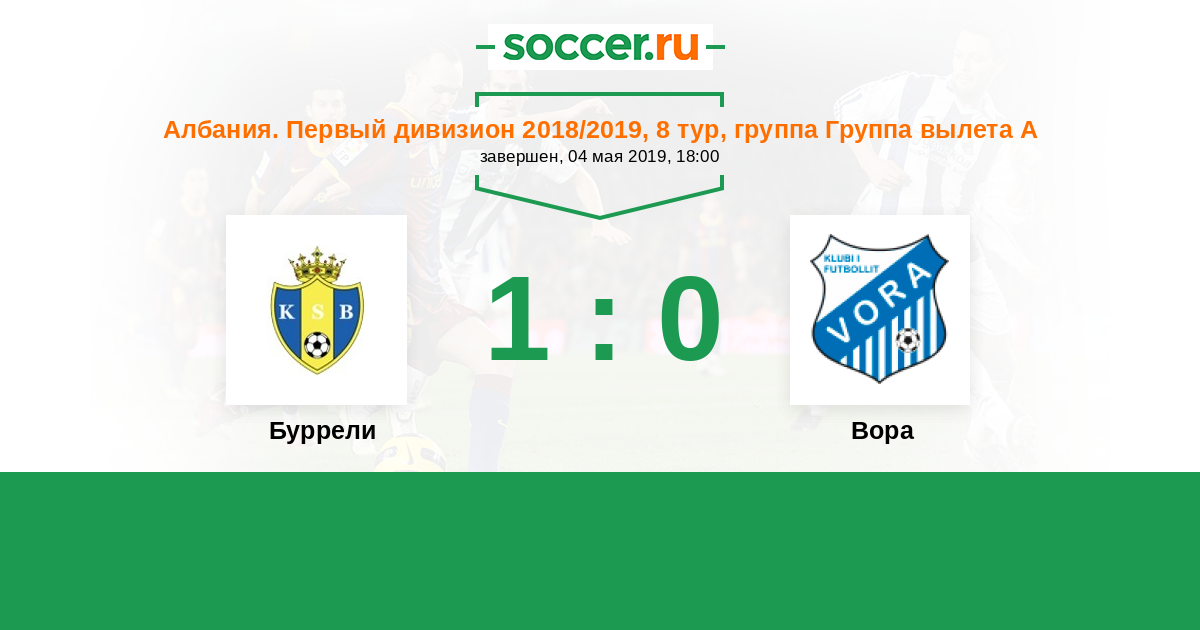 Албания. Первый дивизион 04.05.2019 Буррели Логотип футбольный клуб Буррели 1:0 Логотип футбольный клуб Вора Вора